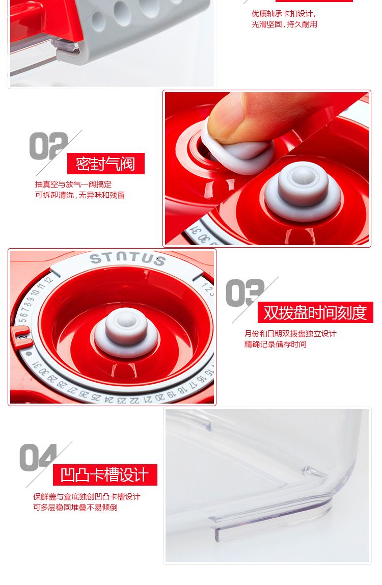 • 密封扣:不抽真空时可扣死,当密闭保鲜盒使用